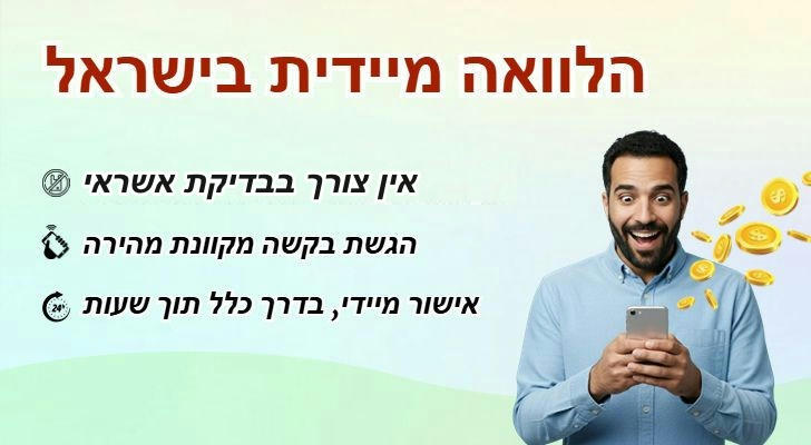 ⚡ אישור מהיר: אישור הלוואה מיידי, בדרך כלל תוך מספר שעות.