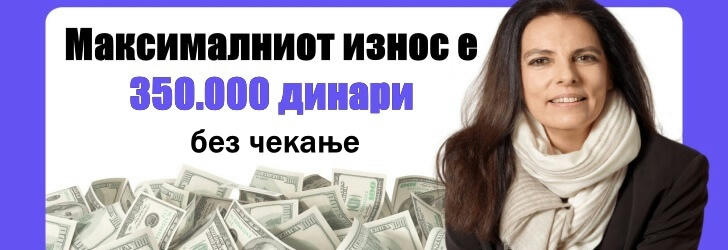 Нема потреба да доставувате непотребни придружни документи, без чекање, Не е потребен гарант или обезбедување, и До 350.000 динари овозможуваат брзо и едноставно решение за покривање на итни трошоци. Процесот е лесен, без дополнителни формалности, и обезбедува директен пристап до средства кога се најпотребни.