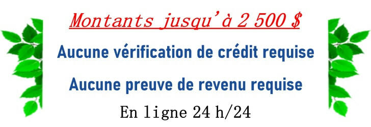 Répondre dans les 24 heures | Aucune vérification de crédit requise | Processus 100 % en ligne | Aucune preuve de revenu requise